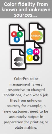 Harlequin ColorPro, provides excellent color process control and accurate, consistent and predictable color reproduction for a wide range of workflows. Harlequin ColorPro provides full support for industry standard ICC (International Color Consortium) profiles (including device link profiles) avoiding dependence on the generic, system level color management of the computer’s operating system.