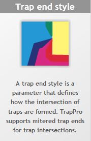There are cases where the full width of the trap does not fit into the available spread area. In these cases, TrapPro automatically modulates the size of the trap to cover a proportion of the available area. The user can adjust the default value. A 50% value is shown in the example below.